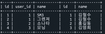 (1, 김철수) (2, 홍길동) (3, 김영희) (4, 박상식) -